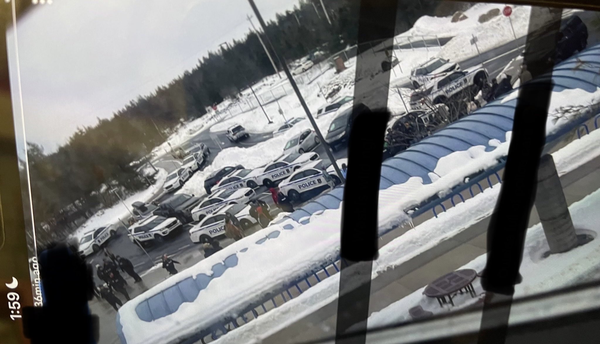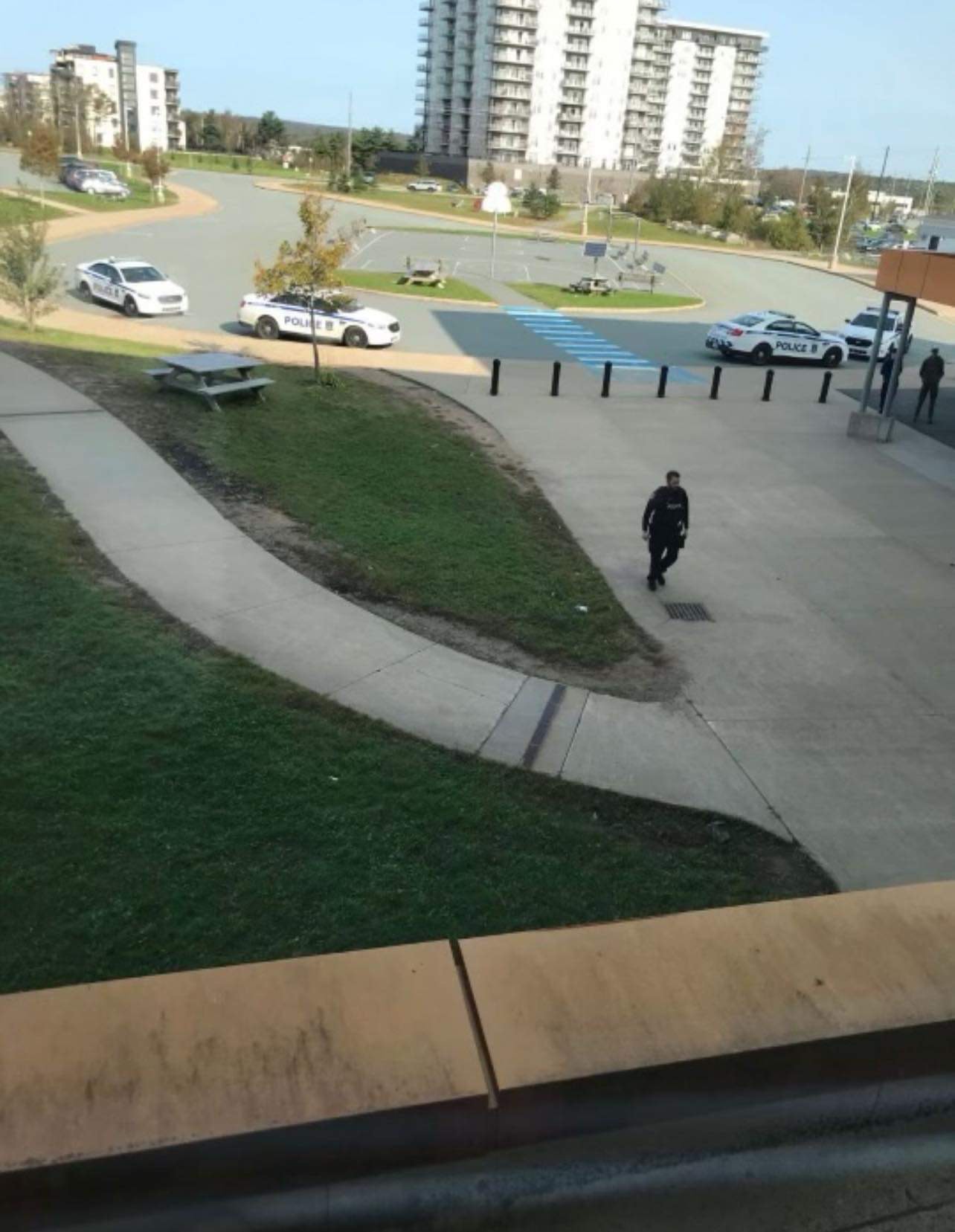 First, there was a very large police presence at Halifax West High School. There appears to be at least 16 police cruisers parked outside the school in one of the photos we’ve received.